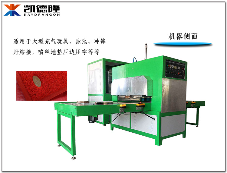 设备用途:企业标识Logo地垫门垫、商标地垫、广告地垫、广告门垫、PVC地毯、塑料门垫、欢迎光临地垫、出入平安喷丝脚垫压字和压边两步高频压花工艺等产品进行热合熔接压花压边等。