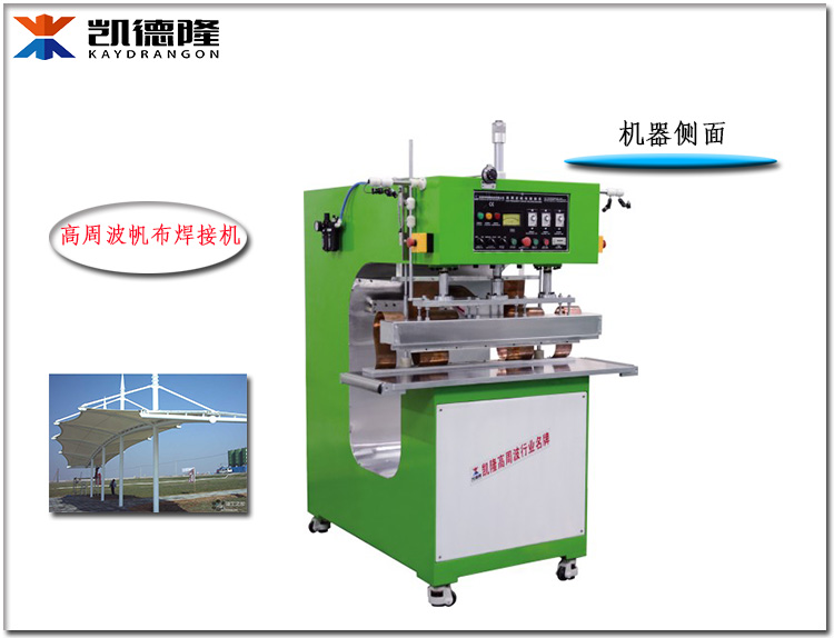 膜结构焊接机12Kw高频塑胶熔接高周波设备设备特点:膜结构高周波焊接机采用C字形设计,大空间压膜放料,简便优越。