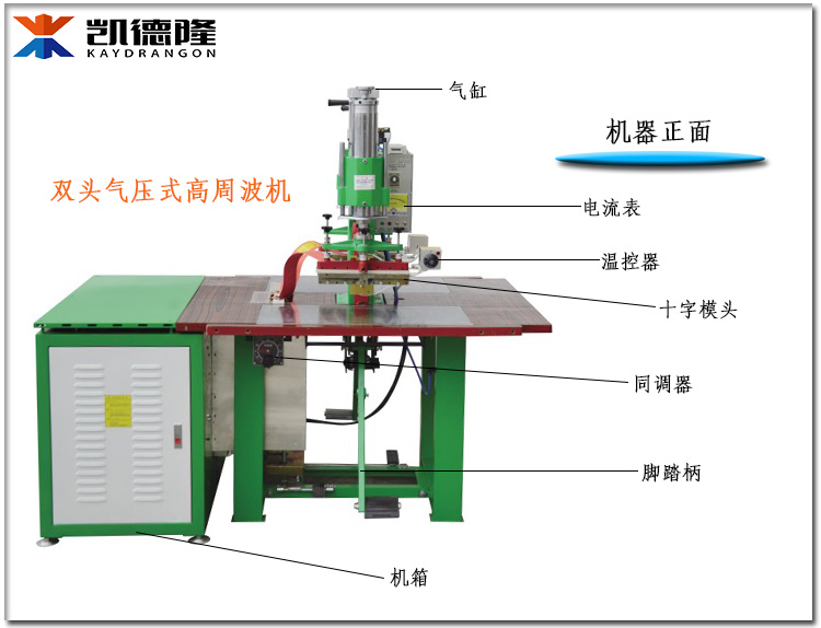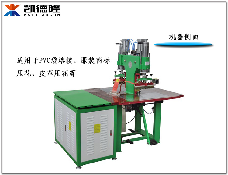 使用范围: 鞋帽服压花、工艺饰品、充气玩具、气垫床、汽车遮阳板,脚垫,靠垫,汽车油壶,等各种汽车用品、商标、箱包、浴帘、地毯、包装袋、热水袋、医疗用器、文具用品、相册、影集、体育用品、PVC折盒、眼镜盒、帐篷、机车坐垫、工具、电子、电器的吸塑盒真空包装封口等。