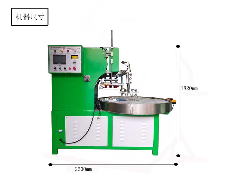 全自动转盘式高周波熔接机用途: 主要用于需要高周波熔接产品加工,高周波机的工作原理是利用高周波先熔接再通过机器配有的压力装置同时切断。因为是同时完成,所以称为高周波同步熔断机。也称为高周波熔断机、熔断机、高周波同步裁断机、高周波裁断机。主要适用于APET、PETG、GAG环保材质的双面吸塑泡壳的封口包装、吸塑纸卡包装、牙刷封口包装,以EVA布类皮革、真皮、OPP、PU材质的熔接及熔断。