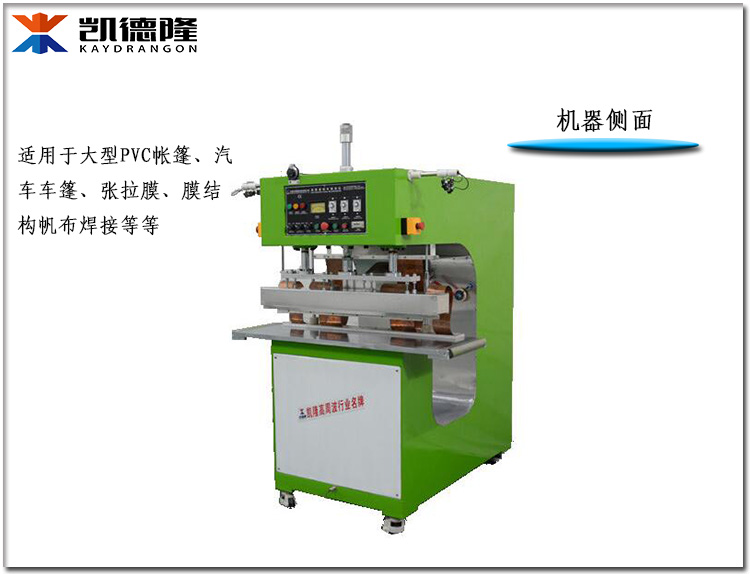膜结构焊接机12Kw高频塑胶熔接高周波设备设备特点:膜结构高周波焊接机采用C字形设计,大空间压膜放料,简便优越。